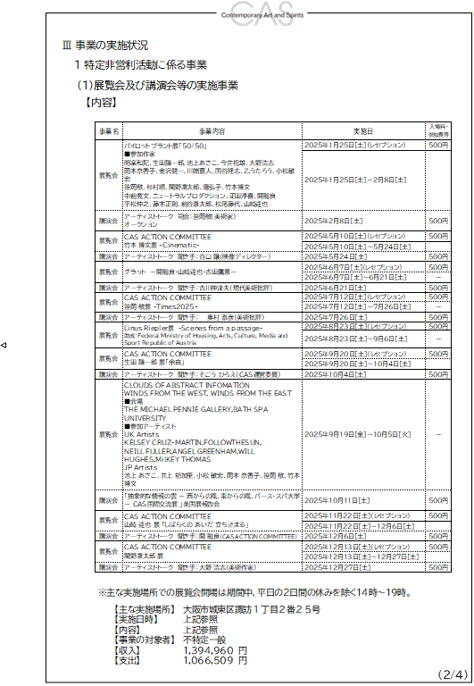 特定非営利活動に係る事業 - 展覧会及び講演会等の実施事業 |