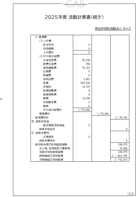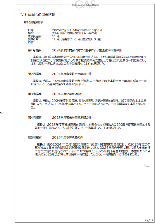 事業報告書1、事業報告書2、財産目録、貸借対照表、収支計算書 |