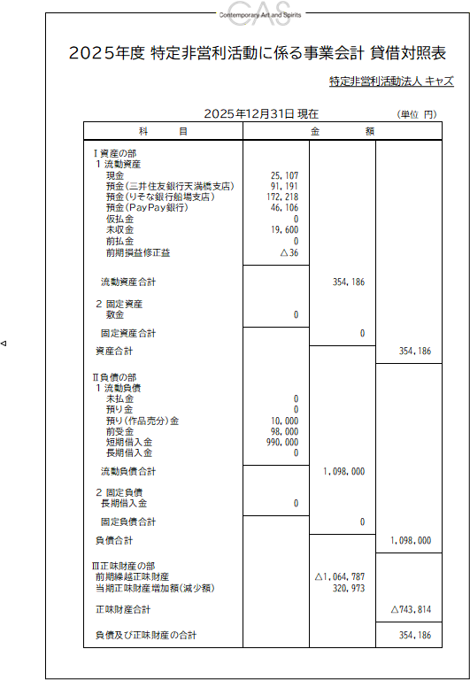 事業報告書1、事業報告書2、財産目録、貸借対照表、収支計算書 |